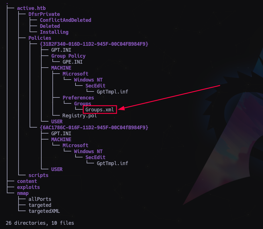 Nota: Las Preferencias de Política de Grupo (GPP) se introdujeron en Windows Server 2008 y, entre muchas otras características, permitieron a los administradores modificar usuarios y grupos en su red. La contraseña definida estaba cifrada con AES-256 y almacenada en Groups.xml. Sin embargo, en algún momento de 2012, Microsoft publicó la clave AES en MSDN, lo que significa que las contraseñas establecidas mediante GPP ahora son triviales de descifrar.