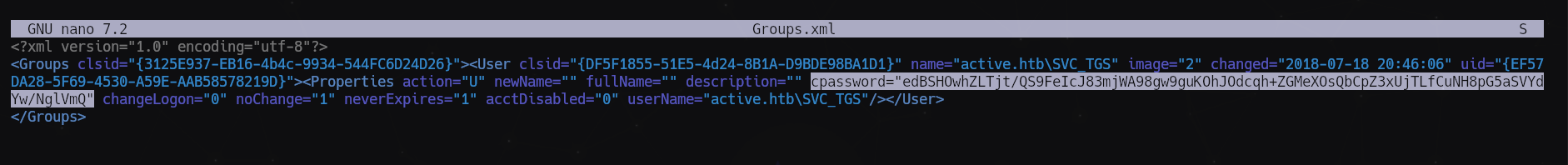 cpassword="edBSHOwhZLTjt/QS9FeIcJ83mjWA98gw9guKOhJOdcqh+ZGMeXOsQbCpZ3xUjTLfCuNH8pG5aSVYdYw/NglVmQ"
