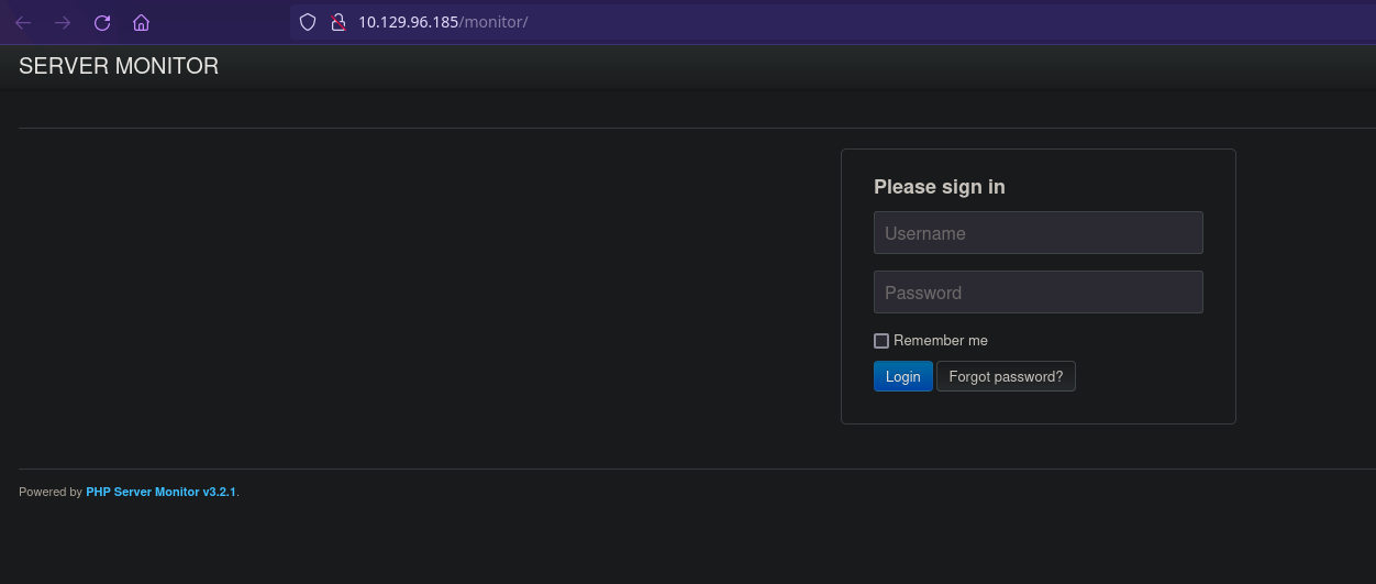 Si navegamos a la ruta /monitor encontramos un login: