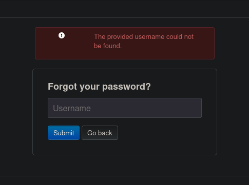 Si le damos a la botón “Forgot password?” nos lleva a la siguiente pantalla: