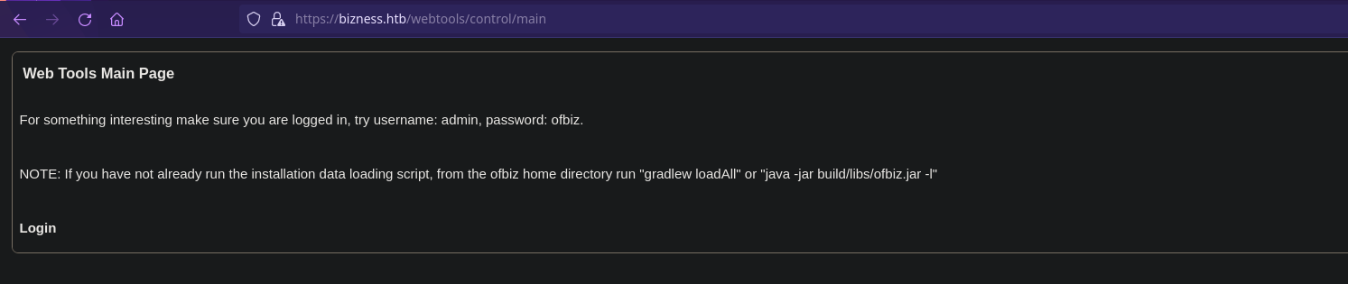 https://bizness.htb/ [200 OK] Bootstrap, Cookies[JSESSIONID], Country[RESERVED][ZZ], Email[info@bizness.htb], HTML5, HTTPServer[nginx/1.18.0], HttpOnly[JSESSIONID], IP[10.129.17.168], JQuery, Lightbox, Script, Title[BizNess Incorporated], nginx[1.18.0]