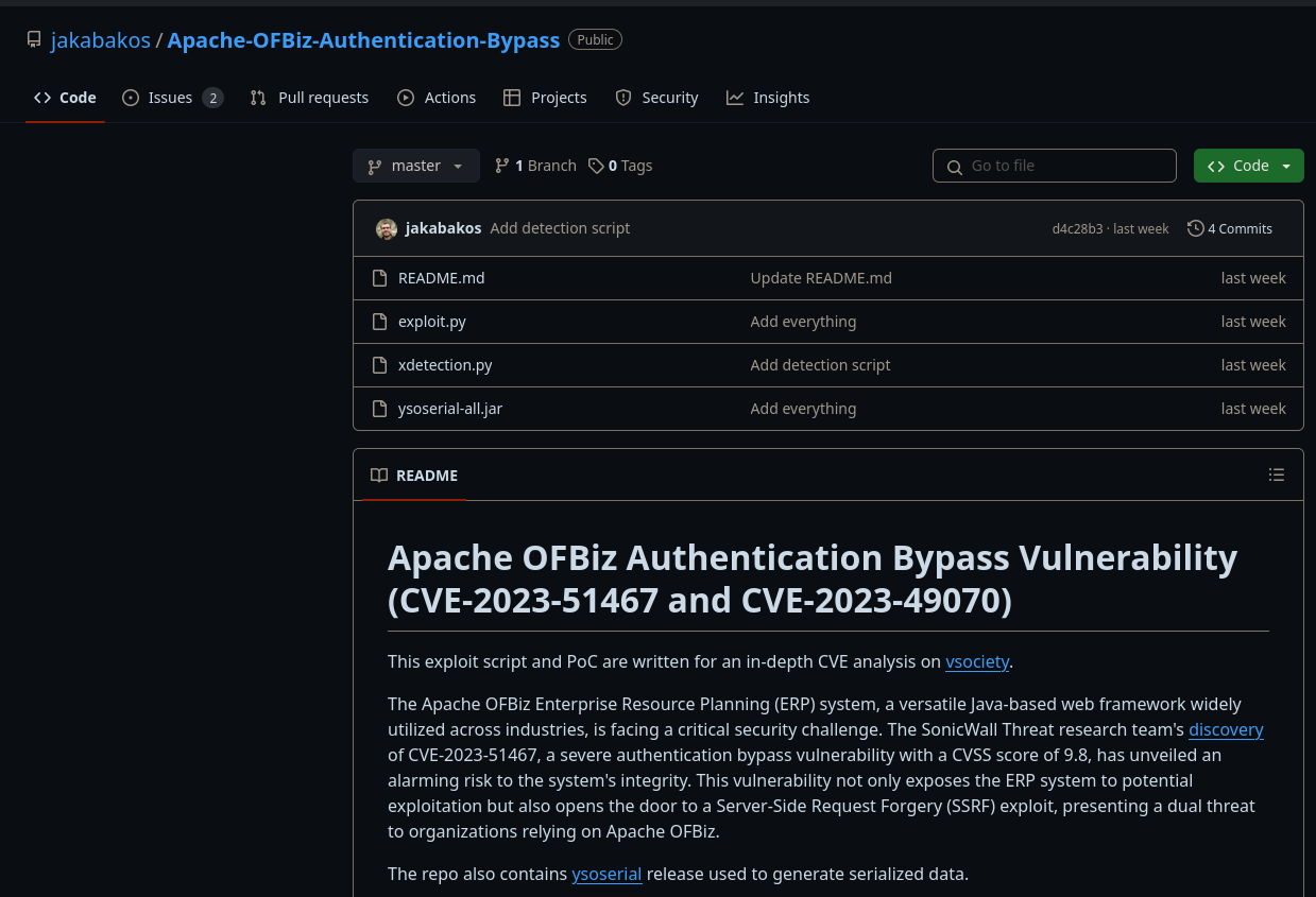 Encontramos este otro exploit que permite la ejecución remota de comandos: https://github.com/jakabakos/Apache-OFBiz-Authentication-Bypass