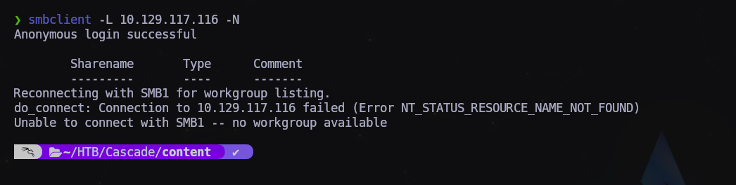 Vamos a intentar enumerar por SMB con una null session ya que seguimos sin credenciales válidas.