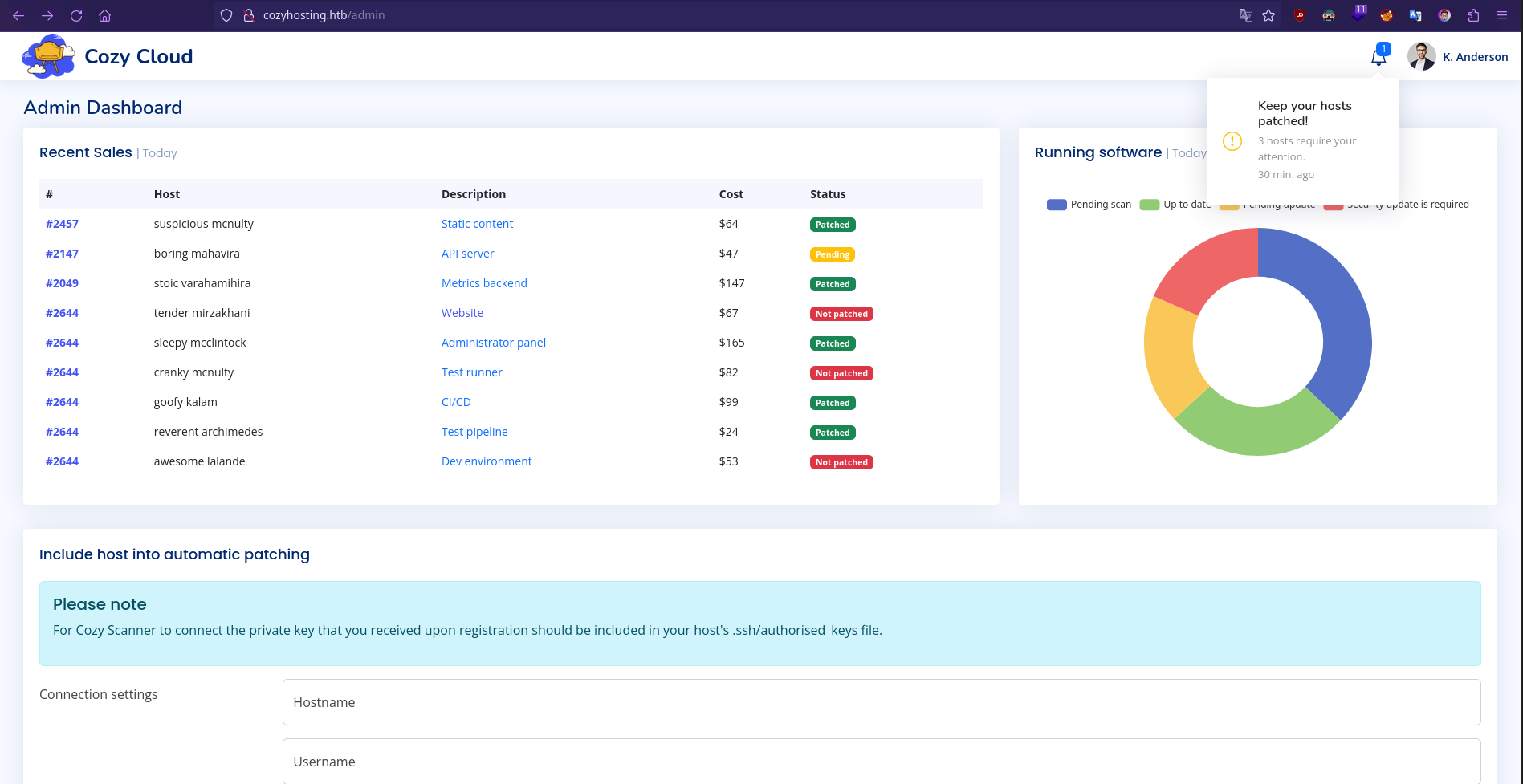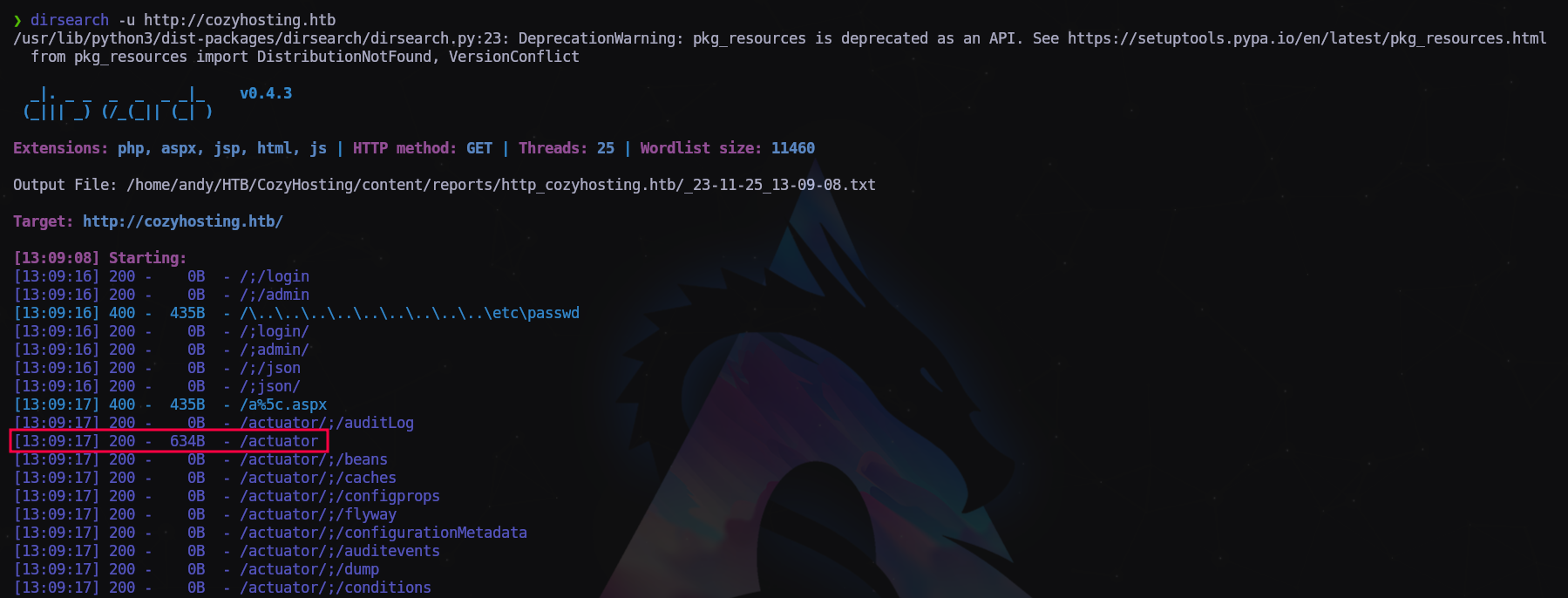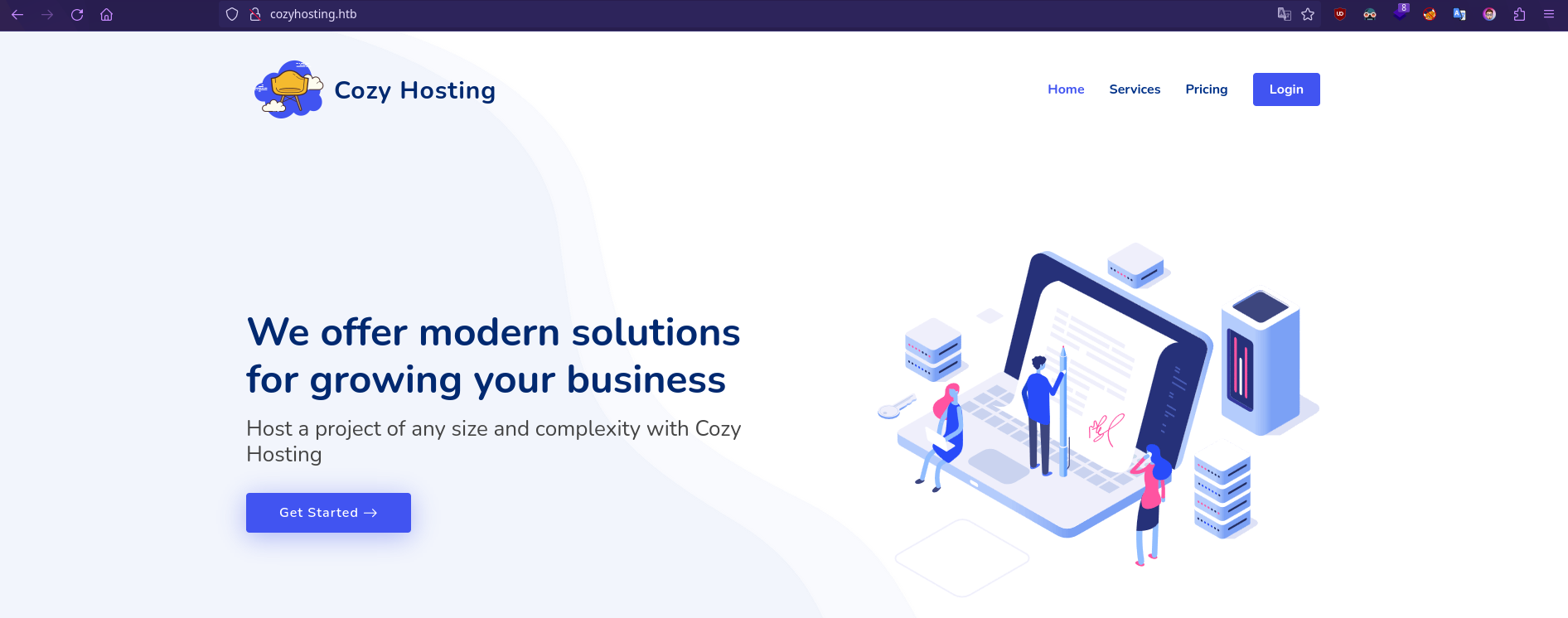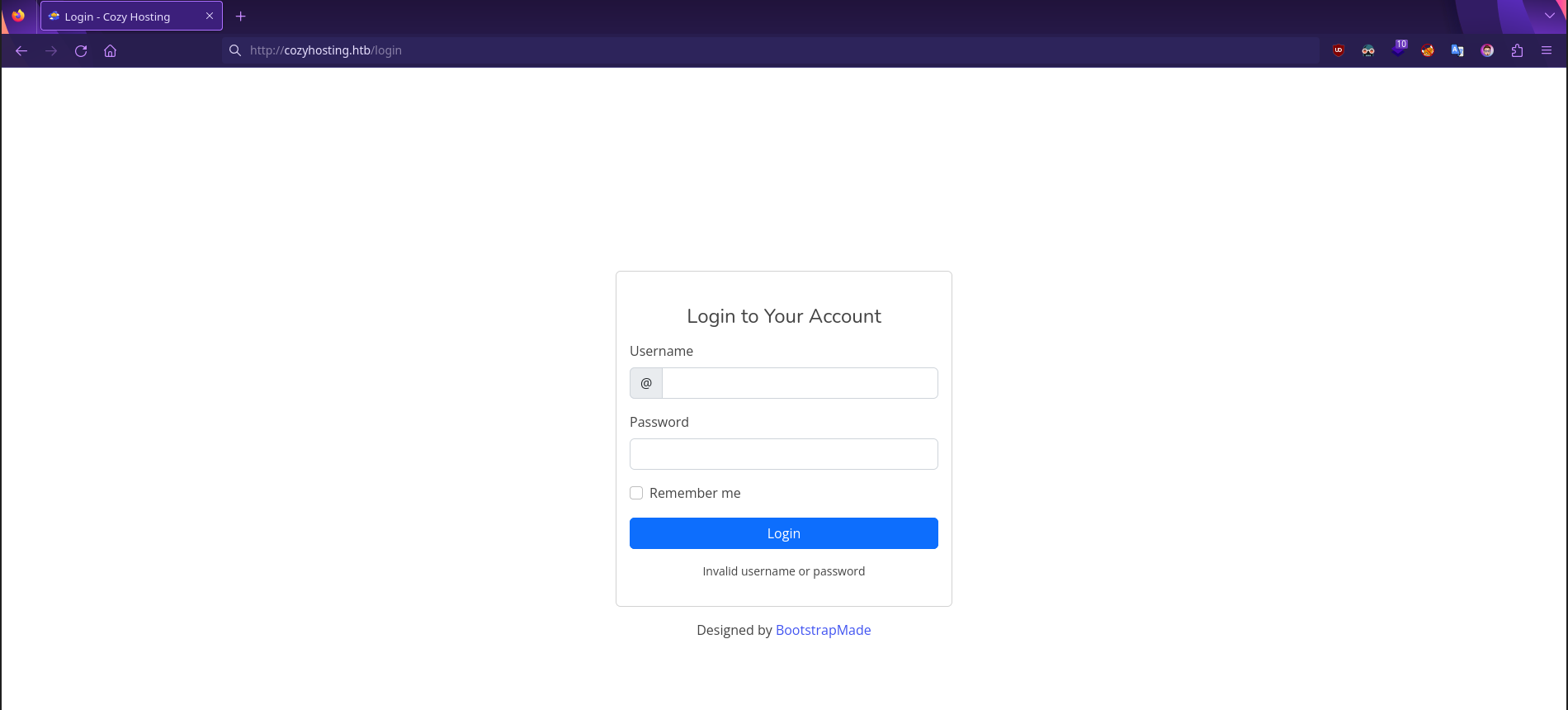 Virtual Hosting a puntando a “cozyhosting.htb”, actualizamos archivo hosts y seguimos…