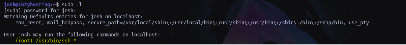 Puede ejecutar con permisos de root sudo. Buscamos en GTFObins https://gtfobins.github.io/gtfobins/ssh/#sudo