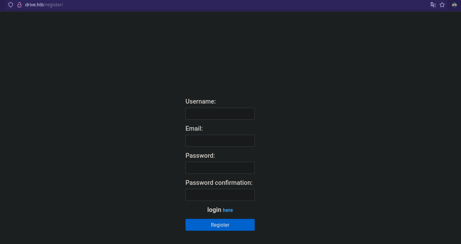 $ ffuf -u http://drive.htb/ -H "Host: FUZZ.drive.htb" -w /usr/share/wordlists/seclists/Discovery/DNS/subdomains-top1million-110000.txt -fl 8