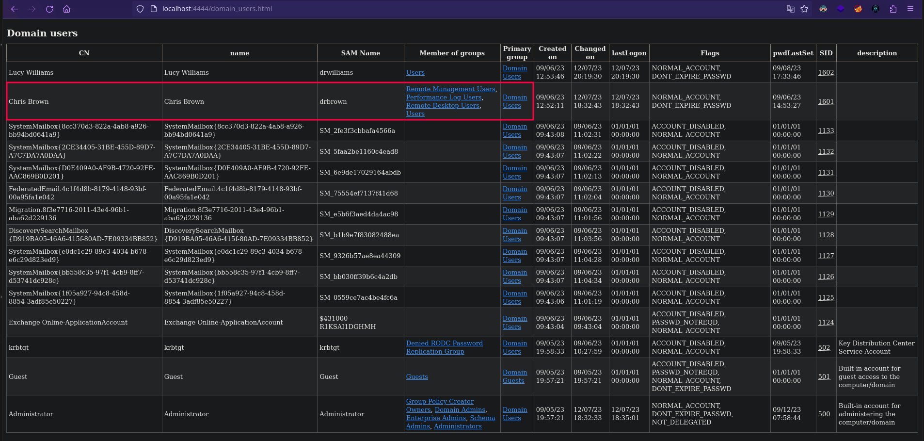Nada más entrar encontramos la contraseña del usuario drbrown en un archivo .bat