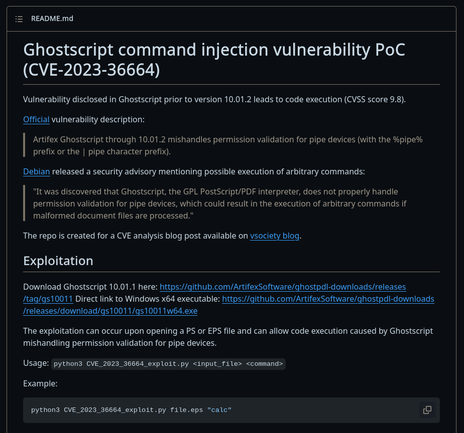 Y encontramos esto: https://github.com/jakabakos/CVE-2023-36664-Ghostscript-command-injection