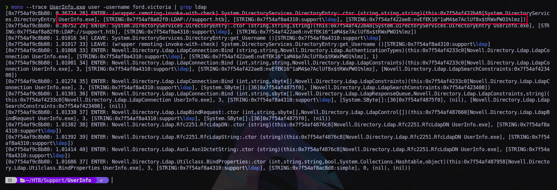 I’ll note on Linux (for example mono UserInfo.exe find -first 0xdf) the conversation looks like this: