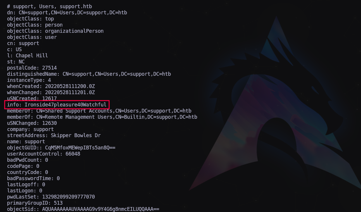 Server Name : cifs/dc.support.htb @ SUPPORT.HTB