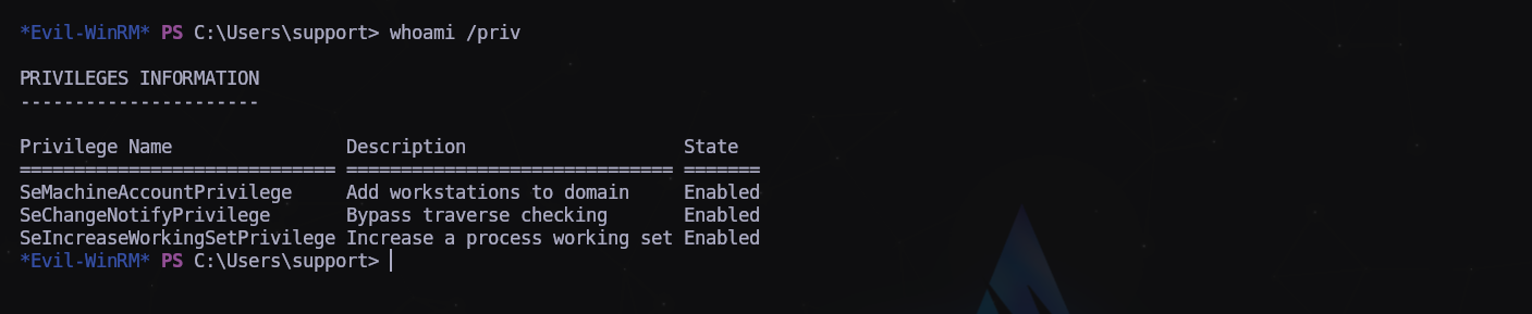 [*] Impersonating user 'administrator' to target SPN 'cifs/dc.support.htb'