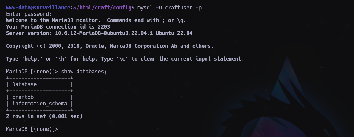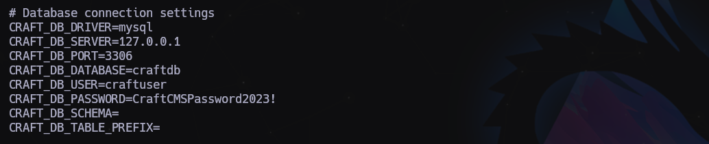 Encontramos credenciales de la BBDD en el archivo .env en /var/www/html/craft
