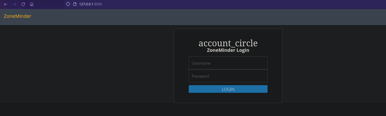 Y obtenemos una página de login. Justo antes linpeas nos había encontrado unas credenciales relativas a un usuario llamado zoneminder o zm.