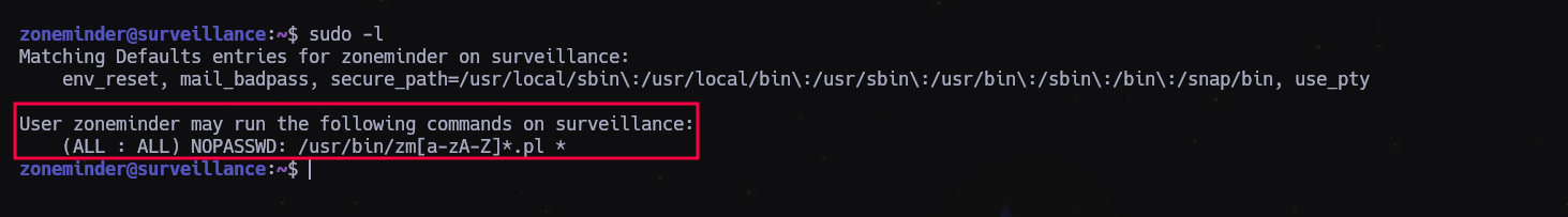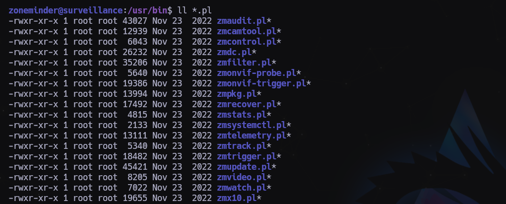 Vemos que podemos ejecutar como sudo un script de Perl que empiece por zm con cualquier carácter del alfabeto con extensión .pl y pasarle argumentos dentro de la carpeta /usr/bin.