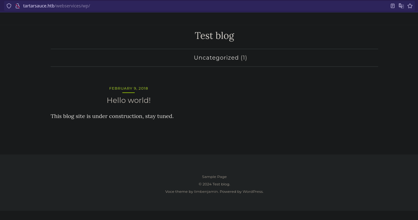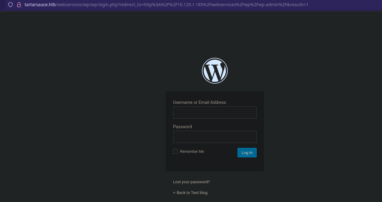 Tenemos que añadir el dominio tartarsauce.htb porque el propio WordPres intenta un redirección.