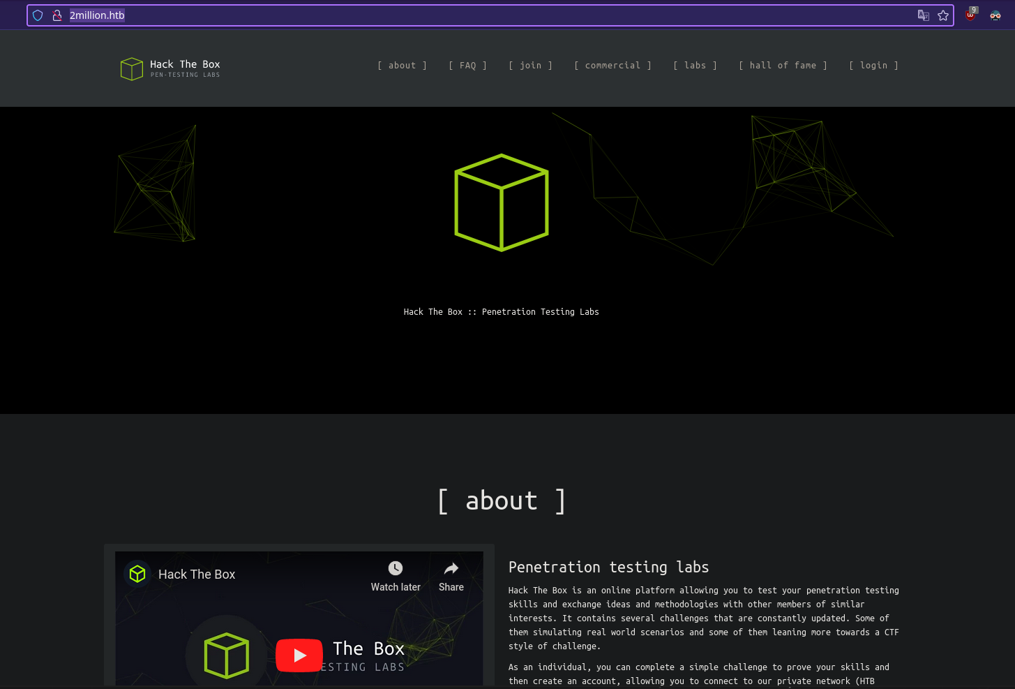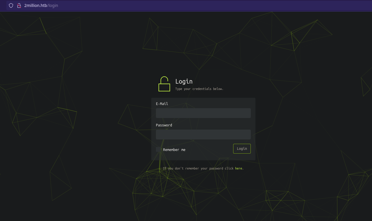 Agregamos el NS 2million.htb al archivo hosts ya que se acontece un virtual hosting.