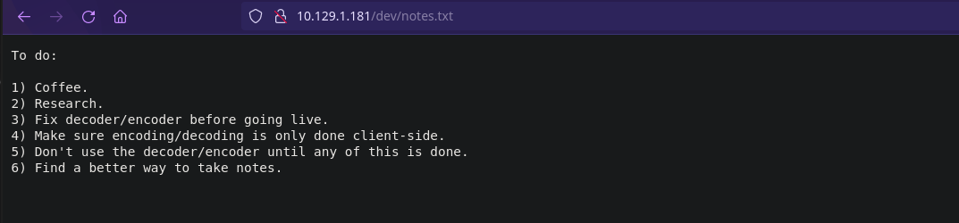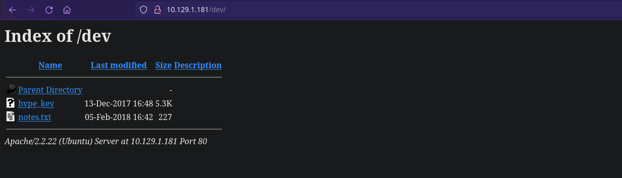 /dev (Status: 301) [Size: 310] [--> http://10.129.1.181/dev/]