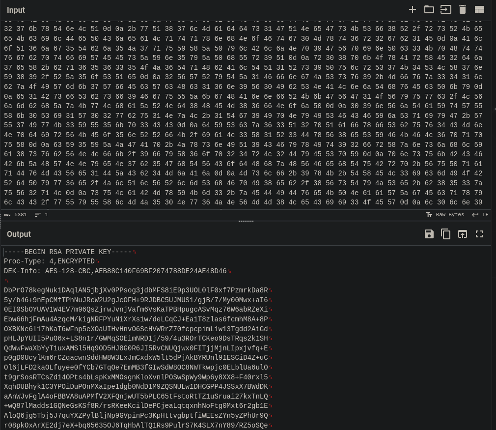 Vamos a centrarnos en el archivo hype_key encontrado. Parece Hexadecimal. Nos ayudaremos de la página Cyberchef para intentar averiguar lo que oculta o cuál es su función…