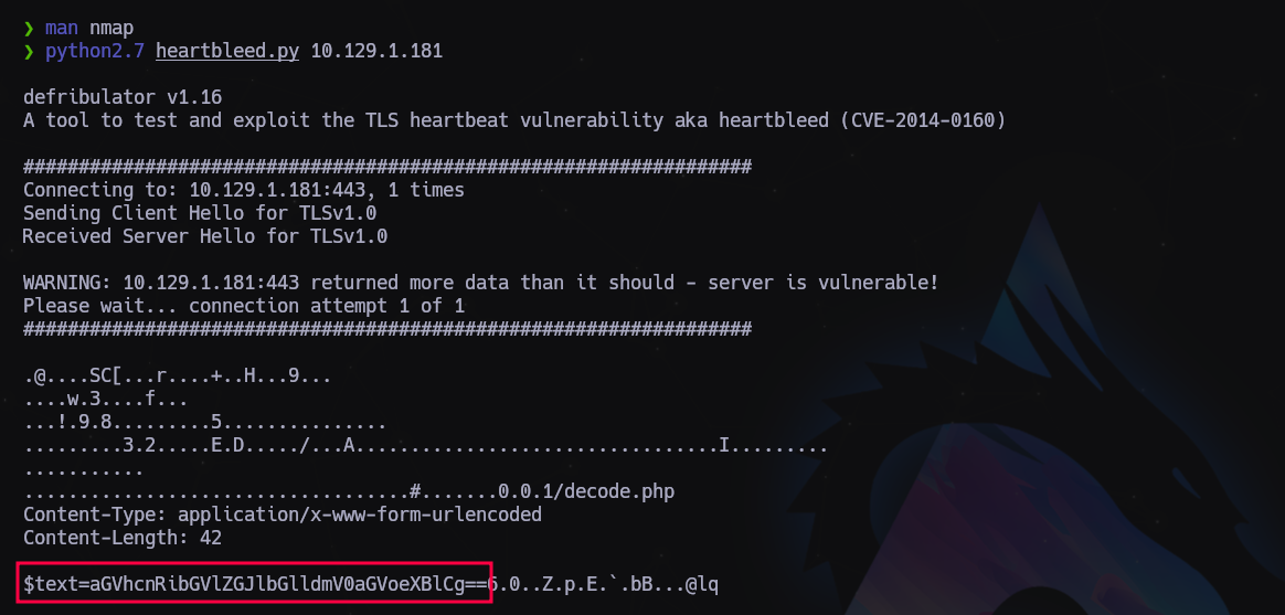 $ nmap --script=ssl-heartbleed -p 443 10.129.1.181