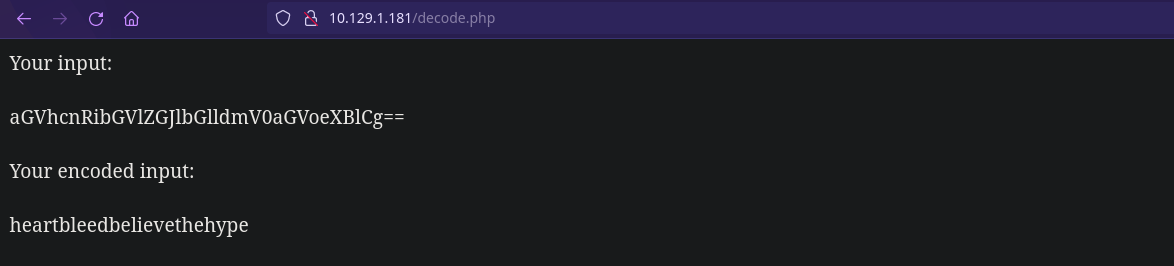 echo -n "aGVhcnRibGVlZGJlbGlldmV0aGVoeXBlCg==" | base64 -d; echo