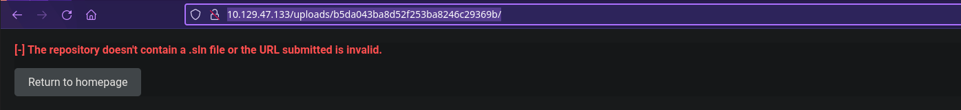 Espera un archivo con extensión .sln. Parece que espera un proyecto de Visual C# en formato de Web tipo GitHub… Investiguemos un poco por la red.